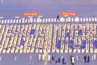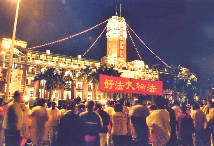 典礼在庄重的气氛下顺利结束,结束后,学员们迅速移动到排字的地点,以总统府为背景,排成了一个巨大的方阵。不多时,“法正人间”四个大字顿然浮现。学员们以排字的形式坐下,发正念,发出强大的正念在三界内清除迫害大法的一切邪恶。一时间、天地无声,彷佛为另外空间的除魔壮举所镇惊、肃然。自天上望下看,整整齐齐的“法正人间”四个大字似乎在预告势不可挡的大法全盛时期即将来临!