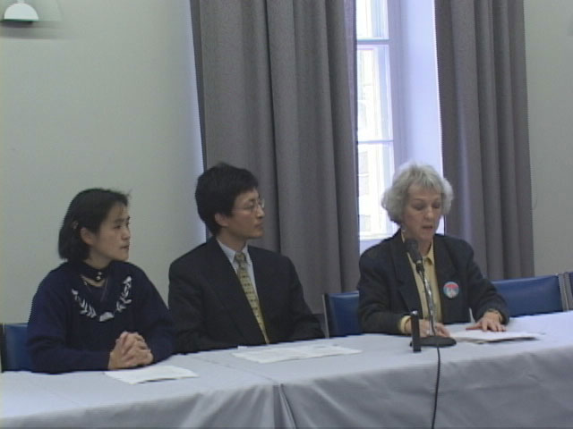 在新闻发布会的开始,李进宇宣读了她的呼吁信。信中说:“(我丈夫)林慎立因为和平地为法轮功呼吁而被拘禁在劳改营已经两年了,我不知道他是如何度过那些个漫长的日日夜夜的。2002年1月23日将是林慎立被延长了6个月劳改期的期满日子。在中国的新年即将到来的时候,我今天在此呼吁: