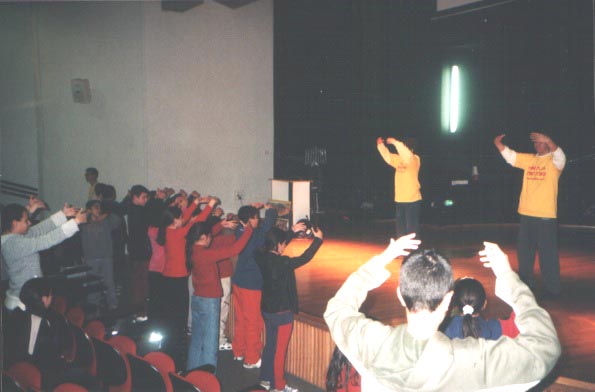 大约150名学生参加了大法介绍会。学员们给他们放映了《返本归真之路》。然后学生们和大法弟子一起炼习功法。这次活动效果很好。在回家的路上学员们为真善忍触及小孩们的心灵而感到欣慰。