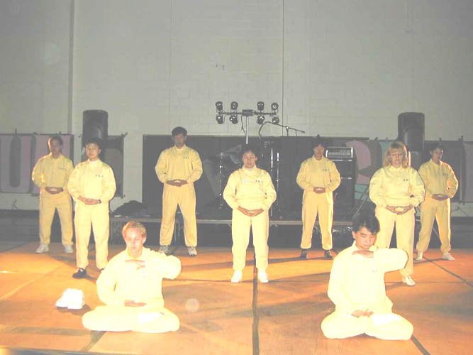 在开幕式结束后,组委会为法轮功安排了两场大型表演。十几位穿着整齐运动服的东、西方大法学员,在大法音乐的伴奏下,将法轮大法的美好和祥和展示给了迪乃克市人民。在随后举行的法轮功专场介绍会上,共有数十名当地居民认真学炼了法轮功功法。