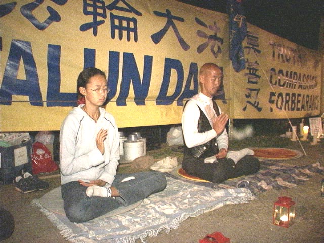 在过去的100多天里,澳洲有一位学员24小时一直坚持在大使馆前昼夜守卫着矗立在大使馆对面的几幅大型横幅,由于强烈的阳光曝晒,横幅的底色由金黄变成了浅黄,他用油漆将横幅上的字重新油漆,他那种坚如磐石的毅力感动了来往于大使馆区的许许多多善良的人们,同时也激励着澳洲许多大法弟子更加地精进。伟大的法才能造就如此伟大的弟子。