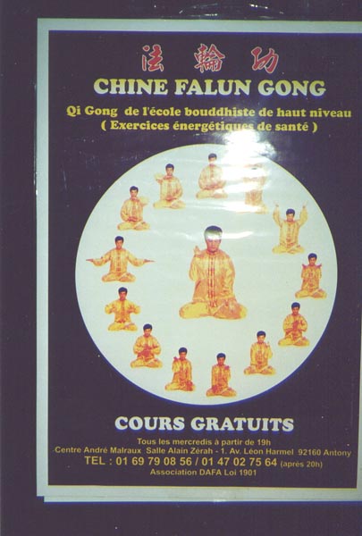 法国大巴黎地区(Region parisienne)安东尼市(Antony)市长、法国左右共治执政党之一“保卫共和联盟(RPR)”发言人、国民议会议员、帕特里克.德威疆先生(Patrick DEVEDJAN)早在96年底就了解到法轮功是佛家修炼方法,是中国的传统文化,而且免费教功。为了方便市民学习法轮功,从97年开始至今,市长亲自批准向大法协会免费提供市政府的场地炼功,并多次向市民张贴公告介绍法轮功。这次,在2002年圣诞节和新年到来之前,在全市各个角落,70多个公告牌上都张贴了法轮功免费教功的公告。在市政府、文化中心、体育中心、师范学校、小学、超级市场市、居民区、高速公路入口处等随处可见。