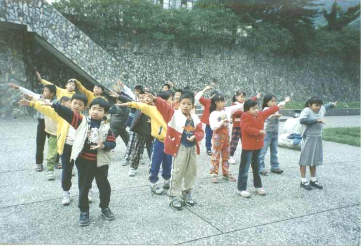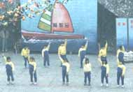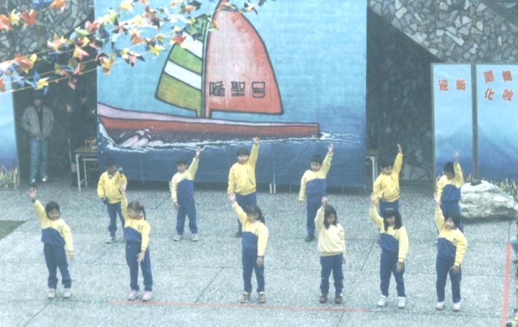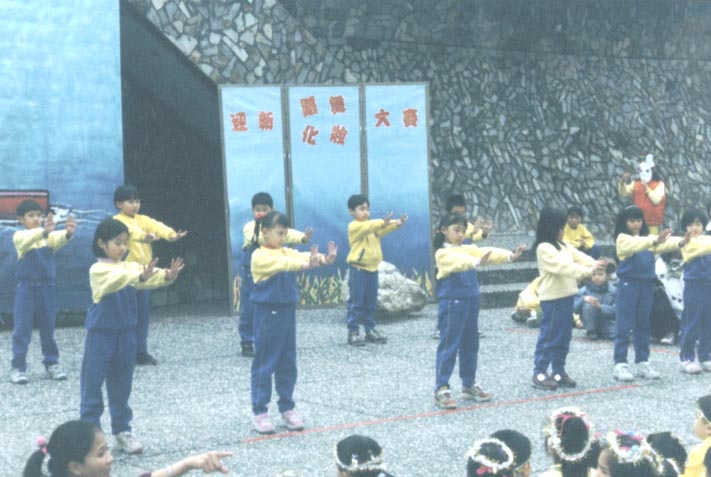 不久前,202班12位小朋友,于全校跨年迎新化妆舞蹈大赛中,表演法轮功五套功法,祥和宁静的功法,在一片热歌劲舞中,独树一格,表演小朋友仅穿黄色运动服,没有化妆打扮,班长觉得有点不妥,班导朱老师说:「你们做了一件最有意义的事,这是最好的表演」结果202班获颁「最佳台风奖」多位家长来宾表示,这功很好,也想学炼,大家都对法轮功留下美好印象。
