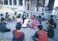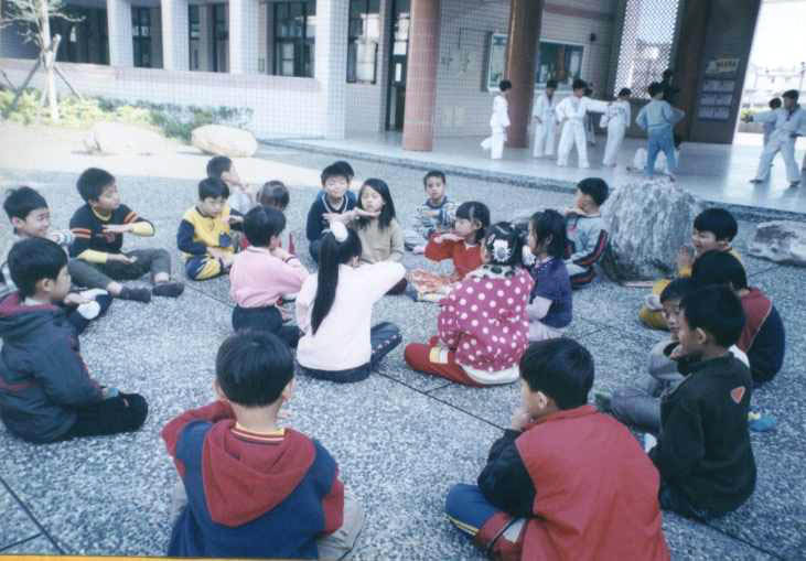 202班朱老师修炼法轮功,身心获益良多,且藉于法轮功除炼功外,更注重心性修养,教人如何做一个好人中的好人,已使全世界上亿人身心健康,道德回升,家庭美满、事业顺利和学业进步,所以设立法轮功社团,得到校长和家长的支持。目前成员为二年级小朋友,共有23位学炼。小朋友炼功时身体发热,全身舒畅,都深深喜爱上这套功法,日常生活中时时以『真、善、忍』作为公约,反省自己并互相提醒,使班级气氛增添祥和之气。