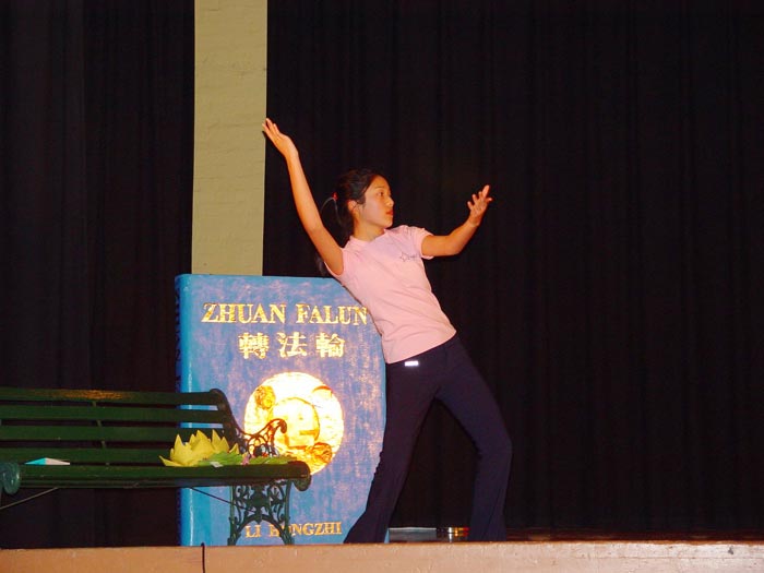 最后我们想特别提到的是南澳学员为这次法会而创作的另一词曲版本的《法轮大法好》。这首歌弦律明快,朗朗上口,易学易唱,相信传唱开来之后,一定能起到“为人民所喜闻乐见,人传人”的“连锁的、挡不住的效果。”由于时间的紧张,参加演唱的二十名学员在驱车八个小时赶到墨尔本后还在不顾疲劳反复练习,最终保证了演出的成功。
