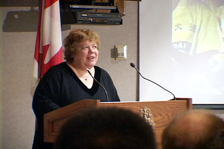 国会议员莉比.戴维斯女士在发言中说,“法轮功学员在这里感谢我们的支持,但我要说,是加拿大和中国的法轮功学员们,正是你们所体现出来的非凡的勇气和力量深深地打动了我们,我们用在加拿大这样民主国家里所拥有的权利去为在中国受到迫害的法轮功学员抗争是非常必要的,我将会一如既往,和我在国会的同仁们一起,支持你们。非常荣幸有机会跟你们在一起,有机会为停止这场镇压尽一份力量。”