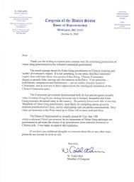 美国会议员表示中国的法轮功修炼者所展现出的道德精神令人鼓舞