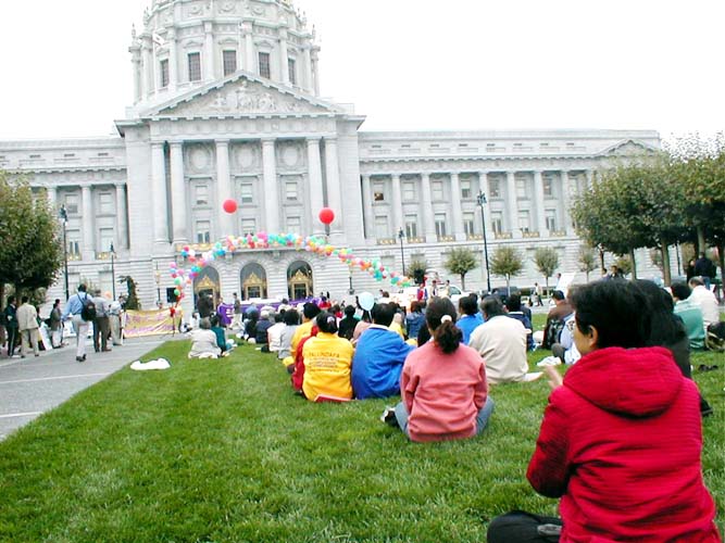 | 法轮大法月庆祝活动现场 | 旧金山市议员克瑞斯-戴利 | 集体炼功 |