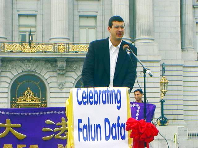 包括加州副州长在内的十几位联邦议员、州政府官员、市长和市议员签发了对“法轮大法月”的褒奖令或贺信。旧金山市议员克利斯-戴利在庆祝仪式上发了言,他高度赞扬了法轮大法和法轮大法学员,还特别指出,“法轮功学员的善良让我印象如此深刻,每一个我接触的学员都是那么好的人。”“法轮功之友”美西主任,执教于旧金山州立大学的黎诚信教授也发了言,他指出,“在江xx下台之后,我们希望他的下一任胡锦涛能停止迫害,如果他不能,我们将要求他的下一任停止迫害,不管是哪一个领导人,他都是暂时的,而真、善、忍是永恒的。”