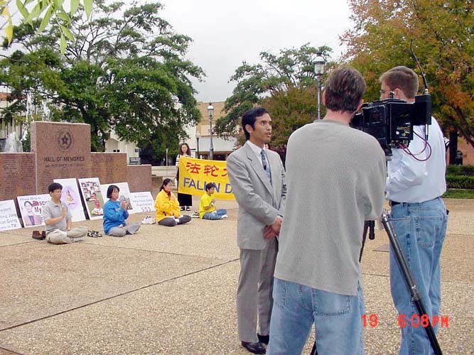 同日上午11时,汇聚休市的法轮功学员在市政厅前成功举办了记者招待会并展示法轮功功法。据海外媒体综合报导,江泽民将于2002年10月22日至10月25日到美国进行私人访问,在伊利诺伊州的芝加哥市和德克萨斯州的休士顿市、克劳福德市等地停留。法轮功学员将针对江的来访继续举行系列和平抗议活动。