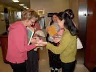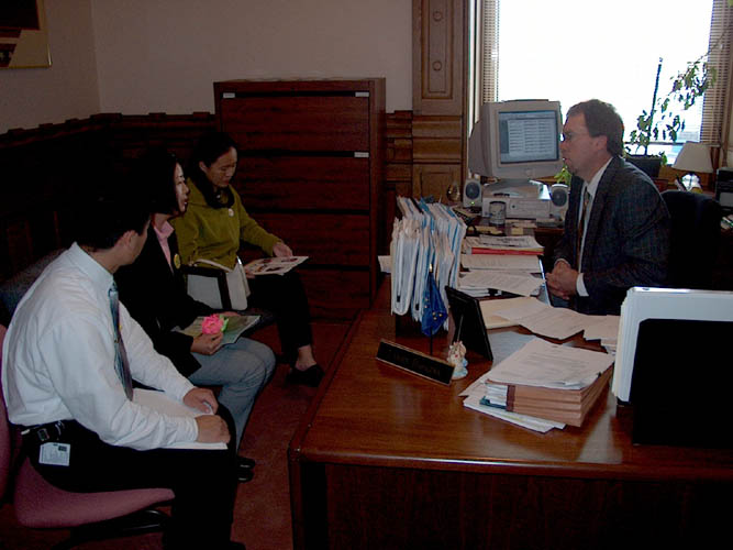 | 向州司法部长特别助理拉里先生讲真相 | 向市长特别助理莫瑞斯女士赠送莲花 |