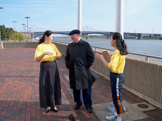 10月20日早上,阳光明媚,风和日丽。我们在市政府大厦门前举行了新闻发布会,俄克拉荷马州的两家主要电视台进行了现场采访,并将在当天下午5点、5点半或晚上10点的新闻播出。这两家媒体都是第一次听说法轮功和法轮功学员在中国的被迫害状况。邱楠楠还用她家庭成员因修炼法轮功而在中国遭受迫害的真实故事向他们讲述了中国江氏集团迫害的残酷,和国际声音对减轻中国大陆法轮功学员的压力的有效性。她向当地媒体介绍了加拿大政府对法轮功的支持和成功地营救出了5位法轮功学员,其中包括她的父亲。之后,我们向记者赠送了莲花,寓意着法轮功学员面对残酷的迫害,仍然保持圣洁,高贵的精神,并希望他们能帮助呼吁美国政府积极参与营救法轮功学员的行动。