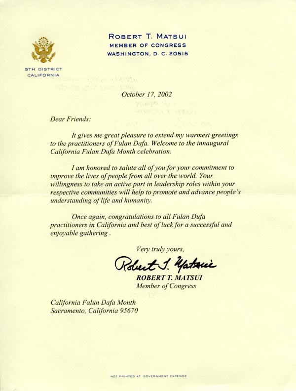 我非常高兴地向法轮功修炼者致以我最热诚的欢迎。欢迎参加庆祝加州法轮大法月的开幕式。