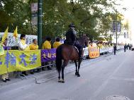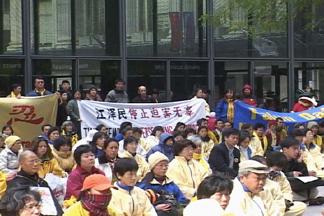 同日上午11时,汇聚休市的法轮功学员在市政厅前成功举办了记者招待会并展示法轮功功法。据海外媒体综合报导,江泽民将于2002年10月22日至10月25日到美国进行私人访问,在伊利诺伊州的芝加哥市和德克萨斯州的休士顿市、克劳福德市等地停留。法轮功学员将针对江的来访继续举行系列和平抗议活动。