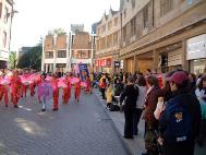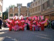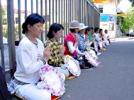 下午三时左右,一辆载着“迎江”队成员的客车停到路边,原来和法轮功学员相比阵容悬殊的“迎江”队此时人数有所增加。不一会儿,苏珊女士注意到一位警察和“迎江”队成员之间的高声对话,便关心地走上前去旁听。