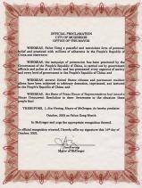 我们在北京游玩了五天,然后去了天安门广场。我和我儿子带了一个图章和300张标签,图章上刻着中文字“真、善、忍,全世界40个国家的人修炼法轮功”,我们到处张贴这些标签--电话亭、街上的阅报橱窗、长凳上、地下人行道、天桥、电梯、楼道、购物中心等,贴出了175张。我们在弘法时不停地念着“恶人看不见标签”,我们在中国弘法时,也让恶人看不见我们。
