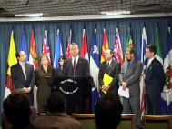 2002年10月23日下午一时,就在加拿大总理克理靖将要参加亚太峰会前,加拿大多党国会议员和法轮功学员一起在国会举行新闻发布会:呼吁总理直接向江泽民提出停止迫害法轮功。