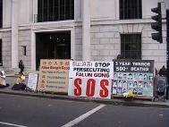 英国大法弟子在驻英中使领馆发正念(图)