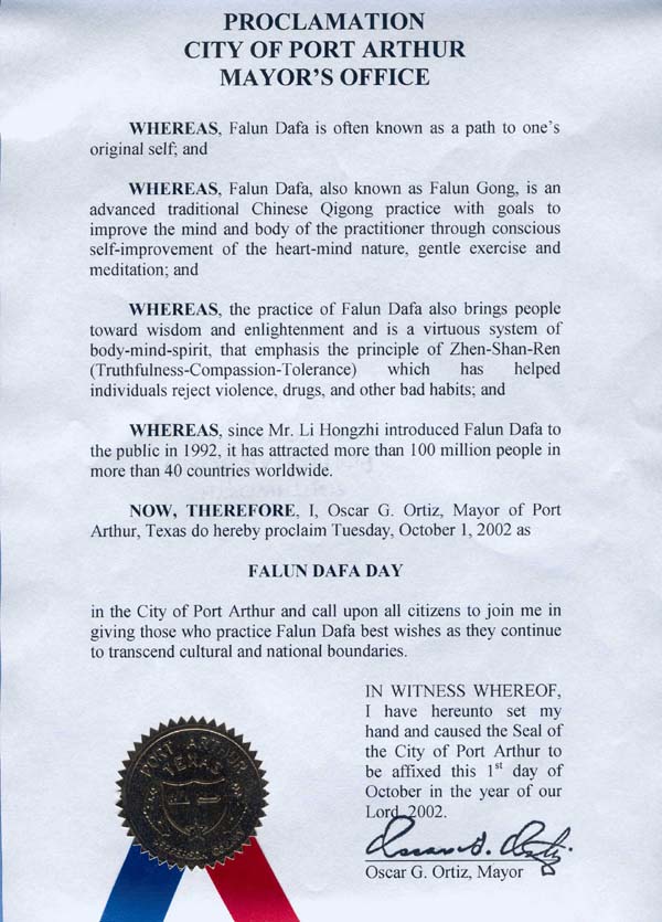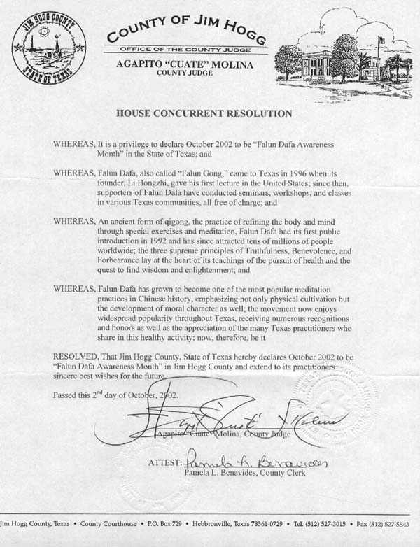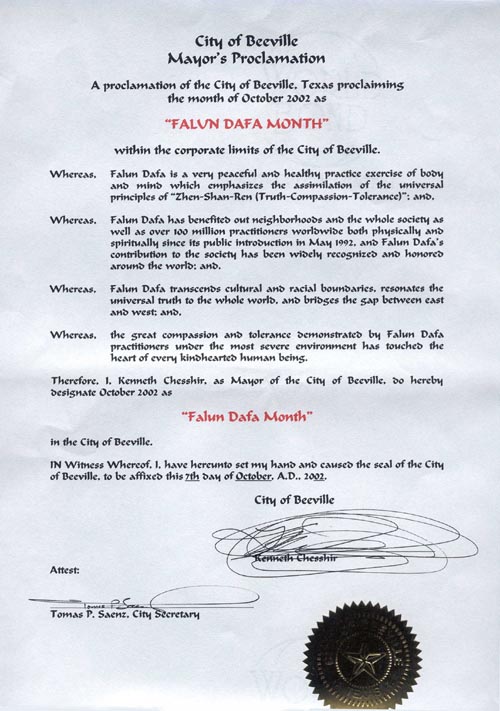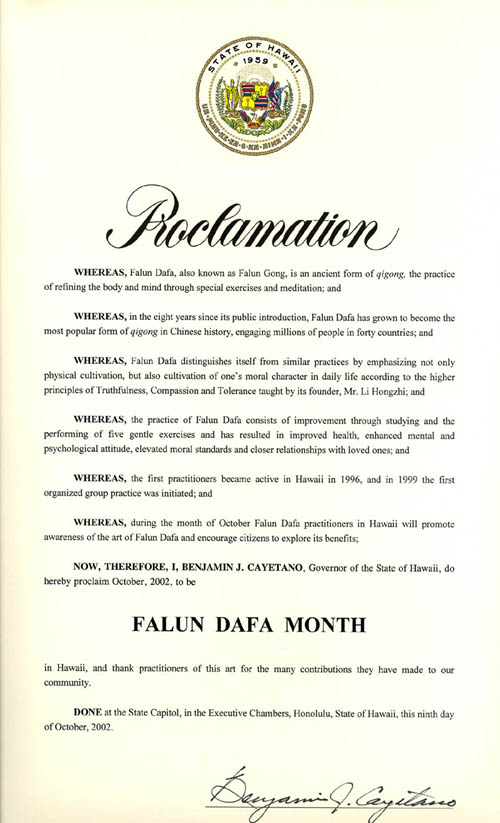 鉴于,法轮功修炼者已通过合法的方式向中国政府和平请愿超过三年的时间,反而被监禁、残酷折磨,从而导致至少200多宗证实的迫害致死案件,上千人被非法劳教5。2002年2月,中国警察在天安门毒打一位为了替国内法轮功修炼者和平请愿的伯克利市居民6;并且