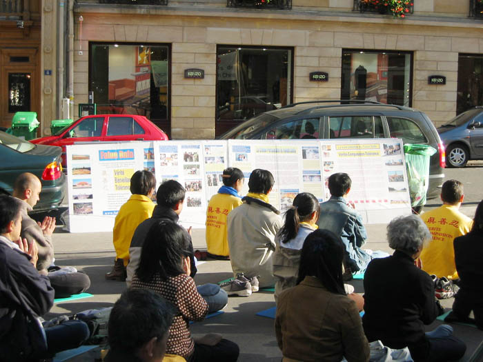 1. 10月12日清晨(星期六),公园里有30多名大法弟子祥和平静盘腿打坐,围观群众赞叹不已。