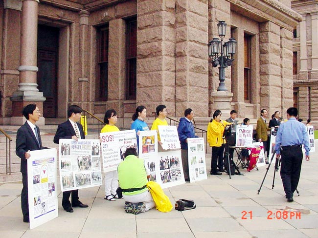现有100多名法轮功学员守候在德州维科机场,一边静静地发正念,用纯正、强大的意念清理江氏给美国带来的邪恶物质场,一边等待江氏车队到达时再度进行和平抗议。