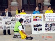 当记者问简先生这样的和平抗议是否对改善法轮功学员在国内的处境有帮助,简先生肯定地答道:“有!我们海外的和平抗议可以让全世界的人了解江氏的罪行,对江氏集团会产生正义的压力。”