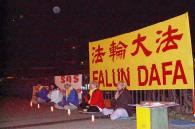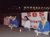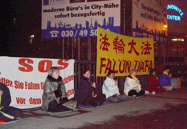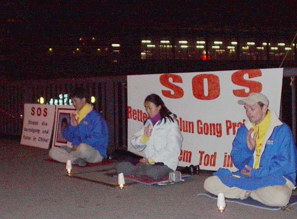【明慧网2002年10月25日】从10月20日开始德国学员每天晚上在柏林中使馆对面的大桥上发正念。