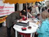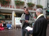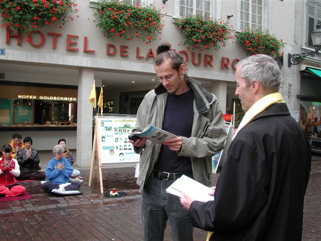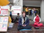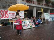 一位行人对我说,自从一九八九年六四大屠杀以来,他就对所有来自中国的报道持怀疑态度。从那以后他试着从字里行间里揣测其内容,而不是盲目地相信所有的报道。当时他自己就是个大学生,所以那场屠杀使他很深有感触。受到那件事情的启发,他对侵犯人权的情况亲自进行了调查,并对中国的经济状况和经济发展表示怀疑。显而易见,很多廉价商品是从劳教所里生产出来的,他绝不会支持这种事。在买东西前他总会看一看在"XX制造"的小标签上写的是什么。这是他个人对中国暴政统治的无声抗议,有机会时他也和朋友和熟人谈论这些事情。