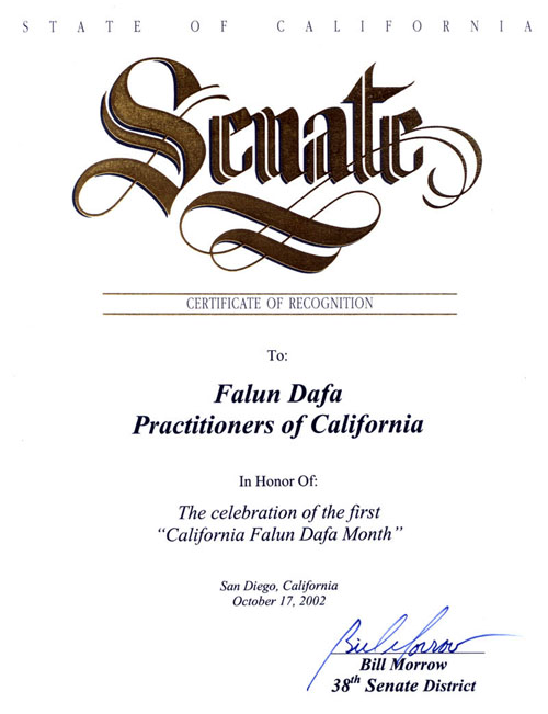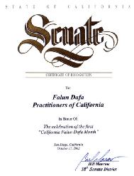 加州参议院第38区参议员祝贺“加州法轮大法月”