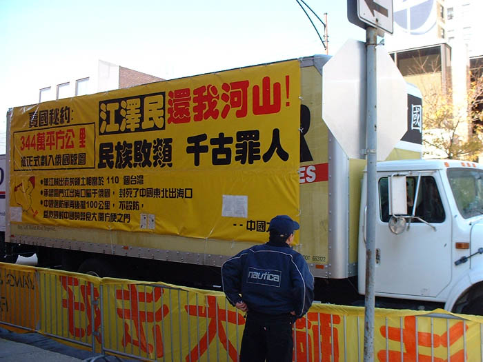 | ABC电视台采访法轮功学员 | 中国大赦“江卖国”大型卡车 |