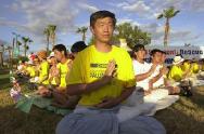 但因抗议者众多,无处不在的黄T恤仍然令这位有“恐黄衣症”的大国领导人无处可避。当江XX坐车访问韩国代表团时,他不得不经过一条有100多名法轮功学员静坐的道路,当时没有警察挡路。