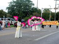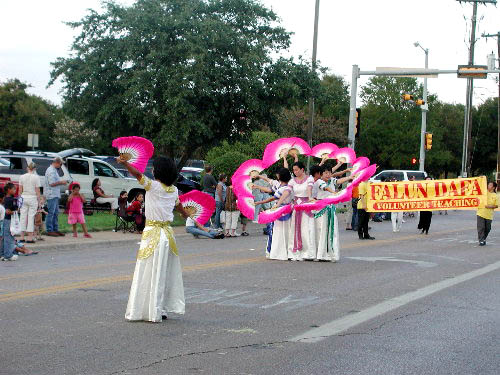 | 法轮功学员的游行队伍 | 派发大法的真相材料 | 翩翩扇子舞 |