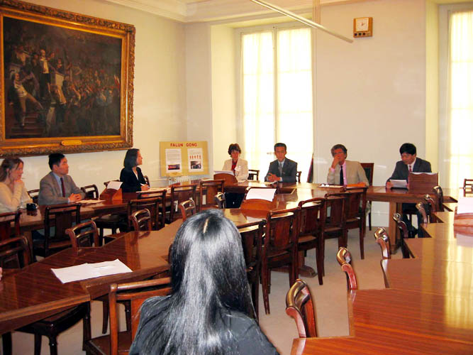 一位西人学员向部长先生概述了最近江泽民集团公然胁迫、欺弄别国政府参与在中国以外迫害法轮功。学员指出,这是对民主自由原则的威胁与挑衅,应予以警惕与制止。