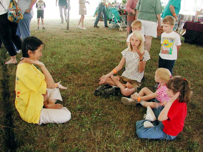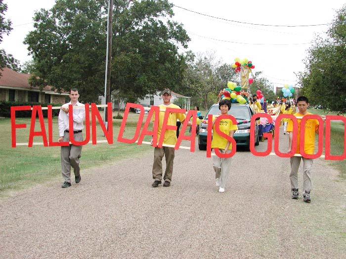 游行结束后,我们来到小镇的公园里。在这里,正在举行一天的展览与表演活动。中午最热闹的时候,休斯顿舞蹈队的学员们纷纷走上舞台,翩翩起舞。之后,九位法轮功学员进行了功法表演。两个表演博得观众的阵阵掌声。表演结束后,不时有人来问在哪里可以学炼功法,还有其他城市的活动组织者来邀请我们去参加他们城市的庆祝活动。