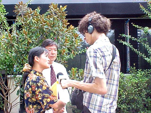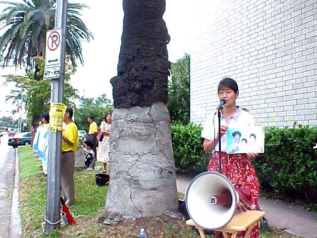 在新闻发布会上,一些受过迫害或他们的亲友遭受迫害的法轮功学员发言。来自德州大学的学生王晓丹首先发言,她的父亲因炼法轮功而在中国判刑17年,在监狱受尽酷刑和折磨。她呼吁社会上善良的人们,呼吁美国总统营救她的父亲。