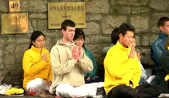 图片报道:法国学员持续在中国大使馆前发正念