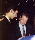 。奥地利现任总理 (Schussel Wolfgang) 会后主动过来和华人法轮功学员交谈和握手,并说很想看看我们带去的真相材料。