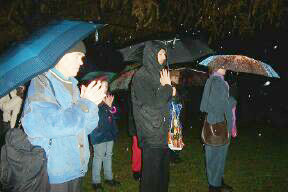 莫斯科大法学员白天集中在学员家里,分成几个地方集中学法、发正念。莫斯科从21日到25日每天都下雨夹雪,晚上温度在零度左右。莫斯科大法弟子每天晚上6点半至8点半集中在中使馆前冒着寒风和雨雪集体发正念。学员讲,在中使馆前集体发正念,念力集中、强大。开了天目的大法弟子看到了在学员集体发正念时在另外的空间进行着一场激烈的正邪大战。一正压百邪,弟子们的正念从其他空间清除了大批妄图增援邪恶之首的邪魔烂鬼。
