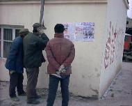 图片:大陆某地大街小巷的真相资料和驻足观看的人们