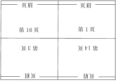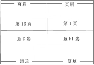 先放一张A4的打印纸,输入页码 16,1,版数为2版,按纸型缩放为16开纸(或A4纸)。(即一张纸先打一半)再按“确定”按钮即打印此页。将打印完的这页转180度再原样放回打印机,然后再输入页码14,3,版数为2版,按纸型缩放为16开纸。再按“确定”按钮打印此页(即打纸的下一半)。这样打出来的结果是页脚对着页脚。页眉在纸的两个顶端。注意放纸的时候一定要搞明白顺序,这是一个非常重要的环节。)然后再打另一面,顺序跟上边的一样,输入页码2,15,版数为2版,按纸型缩放为16开纸。最后输入4,13,版数为2版,按纸型缩放为16开纸。这样一张纸的模板就出来,另外的几页依次类推。