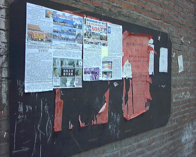 图片:大陆某地大街小巷的真相资料和驻足观看的人们