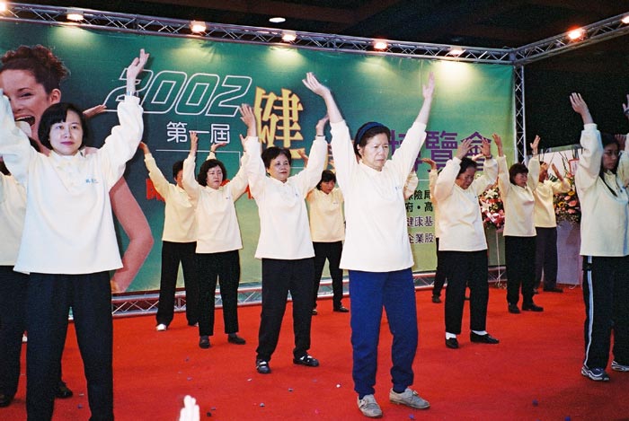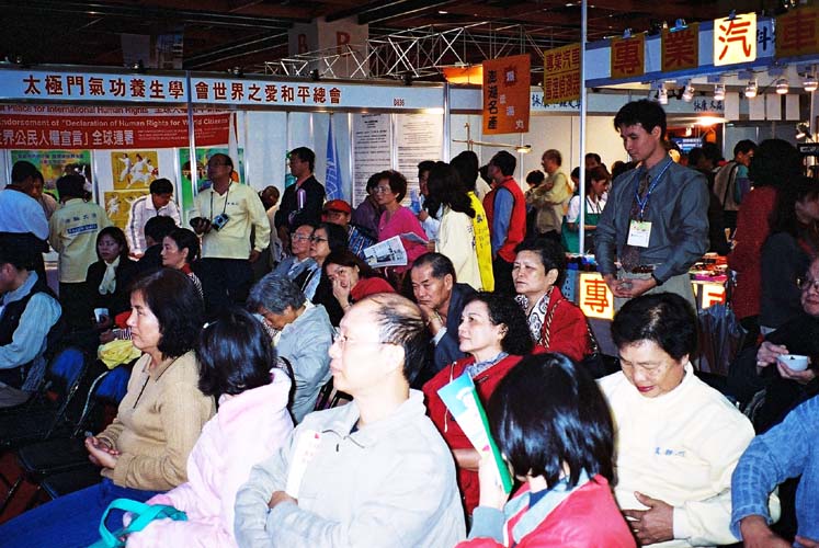 【明慧网2002年12月1日】近日,在台湾健康博览会上法轮功的功法展示吸引了许多人潮。人们奇怪,在那热闹的环境中怎么还能安详的打坐呢? 纷纷向学员打听了解法轮功。 有个小插曲,展台边来了一位小女孩,静静的从头到尾都在展台旁认真的学着功法,还不时的回头走向身后告之妈快来学法轮功呢。