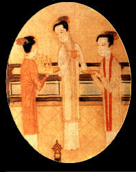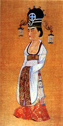 | 宋朝:交领宜身宽袖长衫,东坡巾。 | 南宋:绛黄罗镶金广袖袍 | 《瑶台步月图》中穿背子,梳云髻的妇女。 |