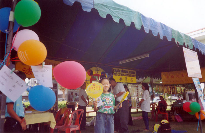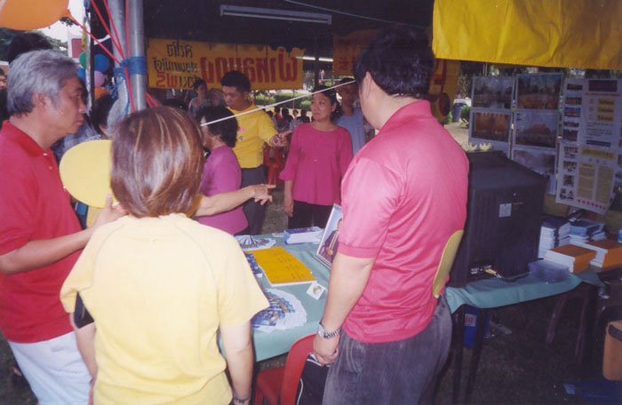 最受欢迎的是免费派发的泰文简介和印有“法轮大法好” 的扇子,有的人自己拿了以后还要给家人朋友带回去。由于天气热,手上的扇子都派上了用场,满场一路的摇,形成了一道亮丽的风景线,后来的人看见,也一路寻找而来索取。四天来,共派发的泰文简介和扇子约四千多。