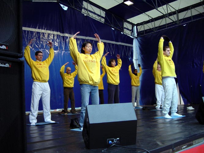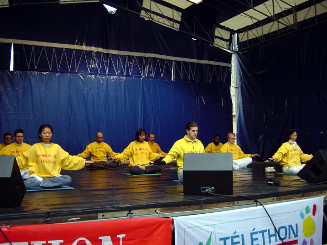 【明慧网2002年12月15日】二零零二年十二月七日,法国法轮大法学员应邀参加了在巴黎郊区蒙呼日市举办的电视募捐活动(TELETHON)。它是法国一年一度的为有基因病的儿童而设置全国性的募捐活动。大法学员们在舞台上表演五套优美的功法时,台下的学员积极配合,有的散发真相材料,有的向观众讲解五套功法的功理,本次活动得到了市政府组织者的大力支持同时也起到了很好的