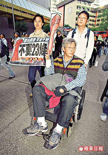 参加星期日游行的报纸出版富商吉米.赖(Jimmy Lai)说这一法律象“一个无形的紧箍圈” 。