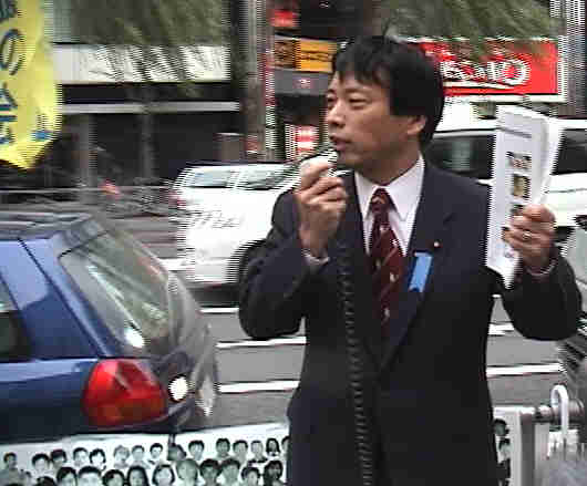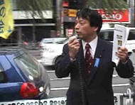 | 土屋议员演说中 | 土屋议员发资料 |