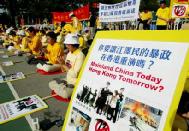 路透社图片报导:法轮功学员静坐抗议反颠覆立法
