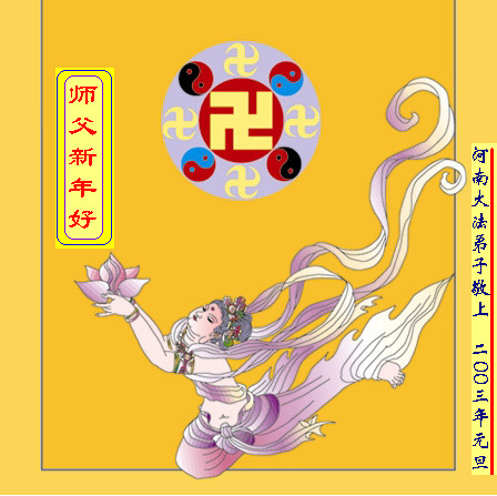 2003年元旦即将来临,河南省许昌地区全体大法弟子用最纯净真挚的心谨向我们慈悲伟大的师尊致以最崇高的敬意和节日问候: