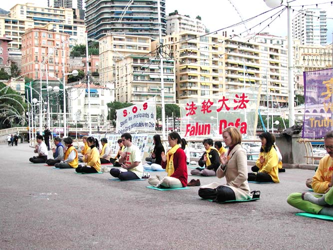 【明慧网2002年12月3日】原中共中央政治局常委,中央610办公室头目李岚清,于2002年12月1日至12月4日到欧洲摩纳哥公国进行访问。欧洲部份大法弟子闻讯后,星夜兼程赶到摩纳哥和平请愿,要求撤消610犯罪机构,停止镇压法轮功。